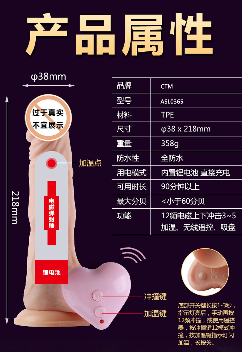 CTM仿真阳具 伸缩震动加大加粗情趣用具女电动加温加长成年性用品